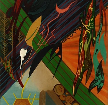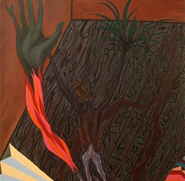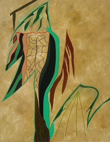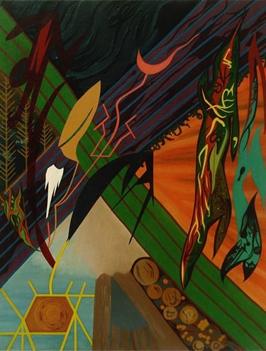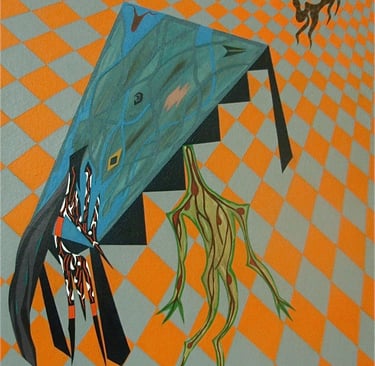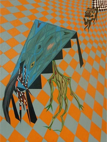 In the vain of whale, plus in bed in bliss in Surry Hills Sydney 1998, Oil on greyboard, 50x37cm